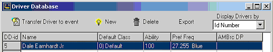 By selecting a driver from the list and then pressing the delete button the driver will be removed from the database.Export