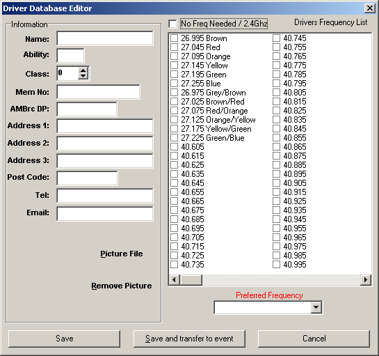If you have drivers that race regularly then entering them in the drivers database will save a lot of time, if you run events where most drivers are new or only race once every year then using the driver database might not be useful. Remember that drivers do change their details such as frequencies and class and so the database will have to be maintained.